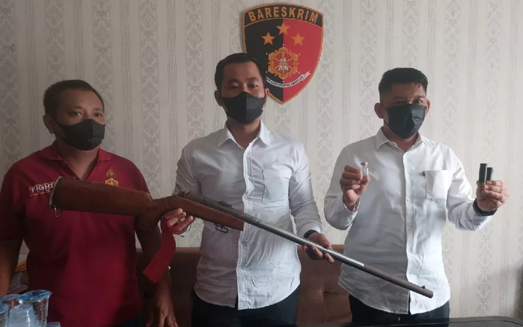 Kasat Reskrim Polres Kukar AKP Gandha Syah Hidayat menjelaskan, AM ditahan akibat dari kelalaiannya dan kepemilikan senjata api jenis penabur.