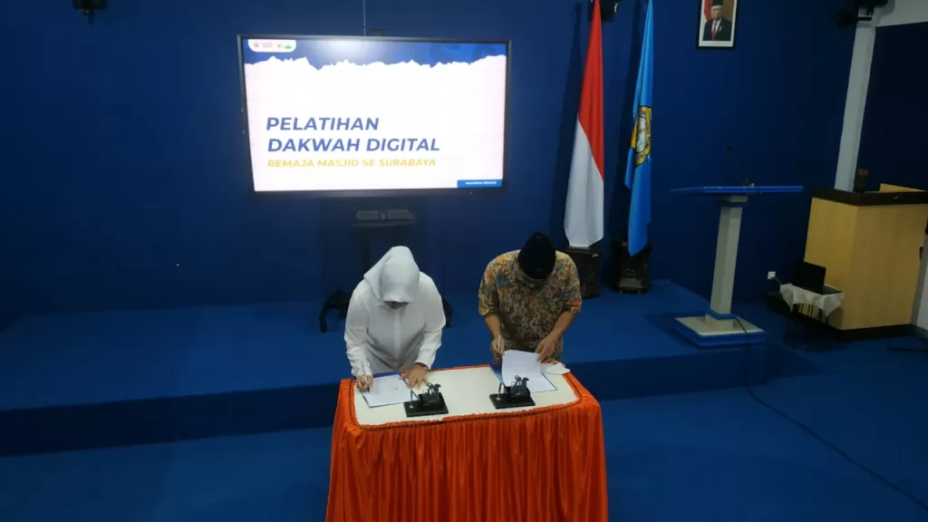 Sementara itu, sebelum pelatihan digital dilakukan, juga dilakukan penandatangan Memorandum of Understanding (MoU) antara DMI Surabaya dengan Stikosa-AWS. MoU ini pada prinsipnya adalah kesiapan kedua belah pihak untul saling berkolaborasi dalam pembinaan remas demi pemberdayaan umat.